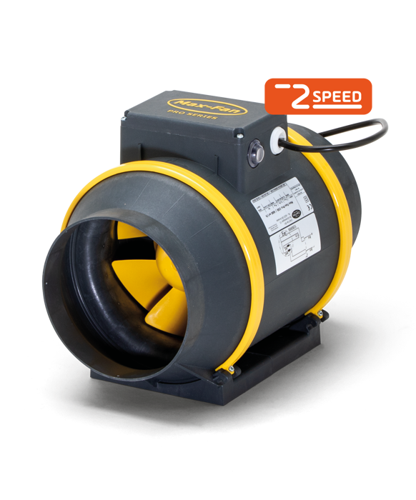 Przyłącza: Ø 200mm Wydajność: I bieg: 795 m³/h II bieg: 1220 m³/h Wentylator posiada sterownik, którym można regulować 2 stopniową prędkość wentylatora. Zasilanie: 230 V, 50 Hz Moc: 117 w Wysokie ciśnienie statyczne Głośność: 51 dB Wysokie ciśnienie statyczne. Wykonany z tworzywa sztucznego ABS trwały. Przygotowany do ciągłej pracy.